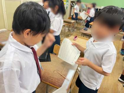 夏休みに何をしたかを質問し合う、「夏休みビンゴ」をしました。