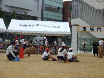 5年生の運動会の様子です。写真上から、紅白対抗リレー、障害物競走です。