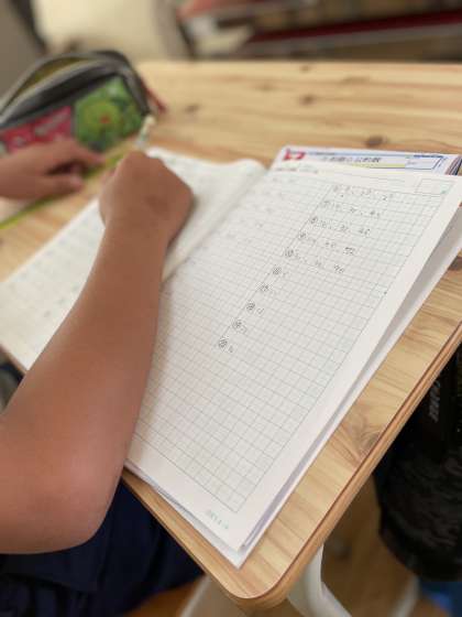 その後、12と20の公約数の求め方を考えたり、練習問題を行い、定着を図りました。