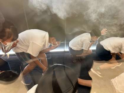 火災が起きて部屋に煙が充満した時、慌てずに姿勢を低くして避難することがとても大切です。無害な煙で、貴重な体験をしました。