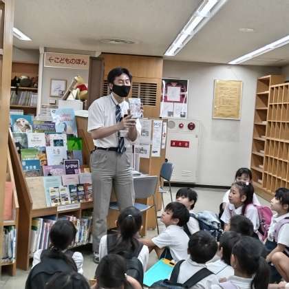 図書館の中を探検したり、多目的室で話を聞いたりしました。