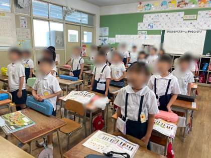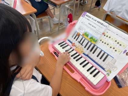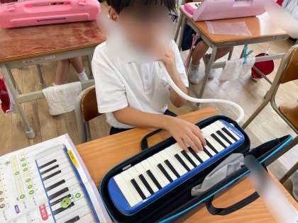 鍵盤ハーモニカでドレミの場所を確認しました。指づかいやタンギングに気を付けて吹くことができました。