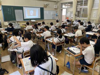 習字で「はらい」の学習をしました。力加減を調節して線の太さをかえることや、一度とめてからはらうことが難しかったようです。