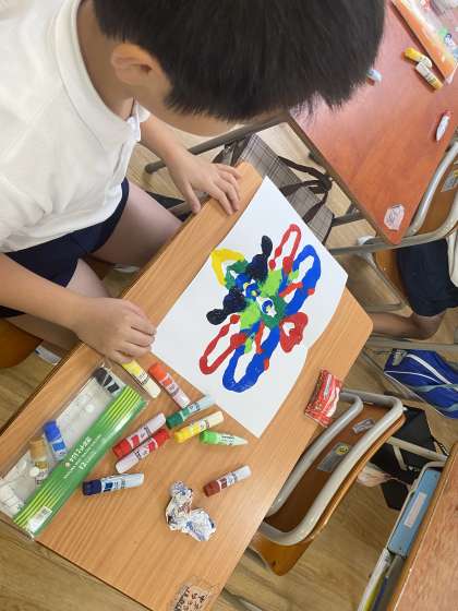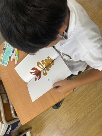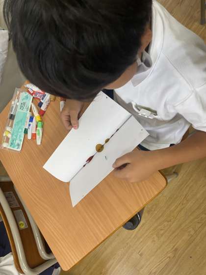 デカルコマニー技法を使って、昆虫を描きました。転写をすることを想像して描くのを楽しむ様子が見られました。