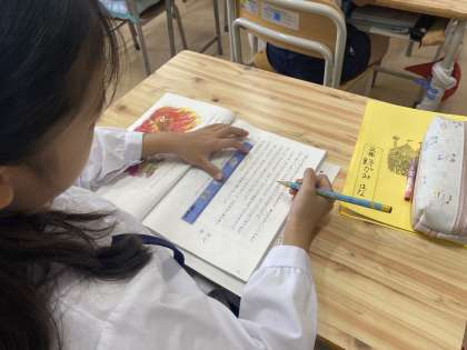 児童は、登場人物の気持ちを考えながら教科書に線を引いて発表することができました。