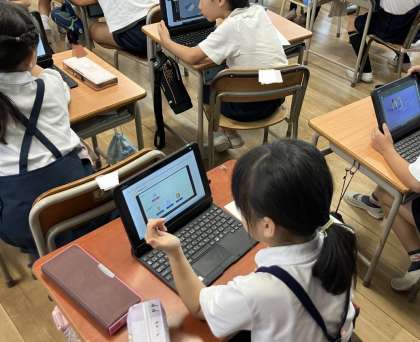 1人1台パソコンを使っておもちゃの設計図をかきました。