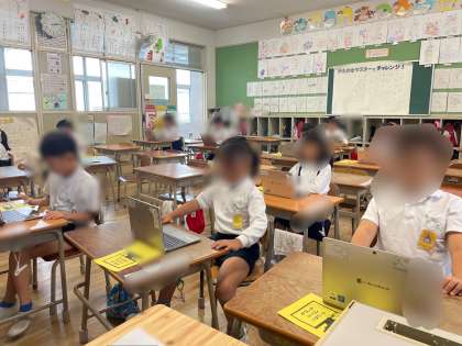 オンラインの接続テストをしました。簡単なクイズをして、手を挙げるボタンを押したりマイクをオンにして答えたりしました。これからもパソコンを使って、いろいろなことを学習していきましょう。