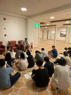 活動班の班長が集まり、今日の反省と明日の予定の確認です。