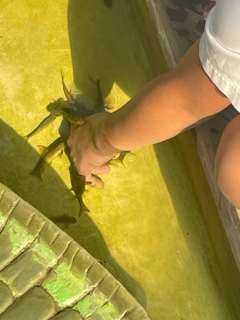 近づいてみると、ドクターフィッシュに手をついばんでもらってました。