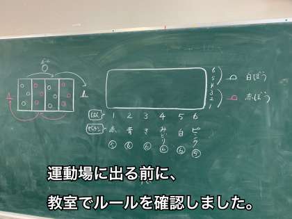 今日は少しでも運動場で活動する時間を増やすために、事前に教室でルール確認をしました。