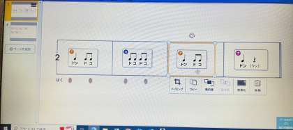 「ドンドン」や「ドコドコドコドコ」のようなリズムのカードを並べて作りました。