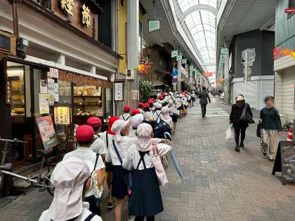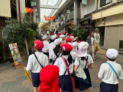 商店街では、八百屋さんや魚屋さん、服屋さんなど、どんなお店があるのかを見ながら歩きました。