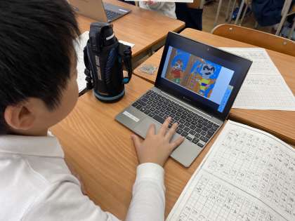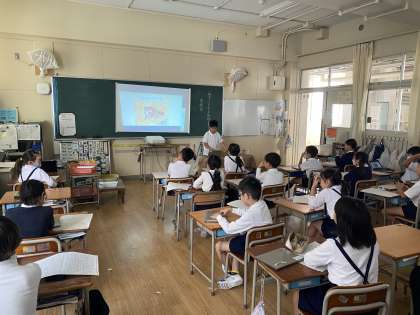 「想ぞうを広げて物語を書こう」の発表会を行いました。登場人物を増やしたり道具を使ったりするなど想像を広げて物語を書くことができ、上手に発表することができました。