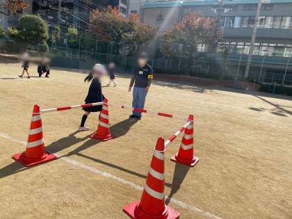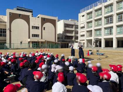 おまわりさんに、交通ルールを教えていただきました。信号や横断歩道があるときは、止まって左右を確認してから渡る、歩道を歩くときもできるだけ右側を通るようにするなど、安全に気を付けて歩行することができました。