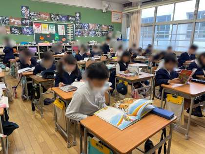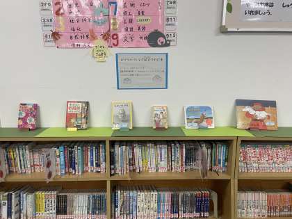 今週は、読書週間です。今学期の読書週間は、図書委員の児童がおすすめの本を動画で紹介する「ビブリオバトル」をします。月曜日から水曜日までに6本の動画を見て、金曜日にどの本が読みたくなったかを投票します。図書室には、ビブリオバトルで紹介された本を展示しています。この期間中に、たくさんの本を読んでくれることを期待しています。