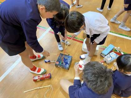 自分たちが作ったおもちゃの遊び方を説明して、一緒に遊びました。