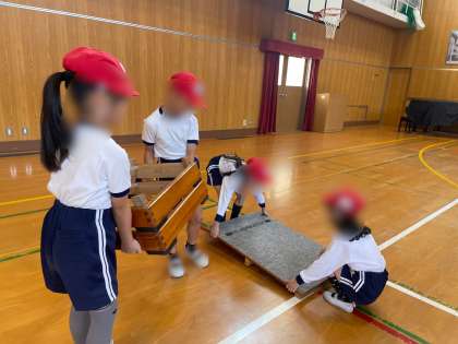 跳び箱を跳ぶ練習をしました。手を奥につくことを意識しました。準備や後片付けもみんなで協力してできました。