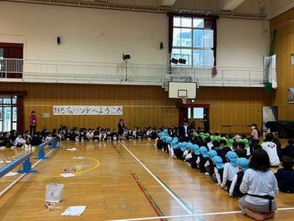 銅座幼稚園の園児さん達を招待して、「おもちゃランド」を開きました。