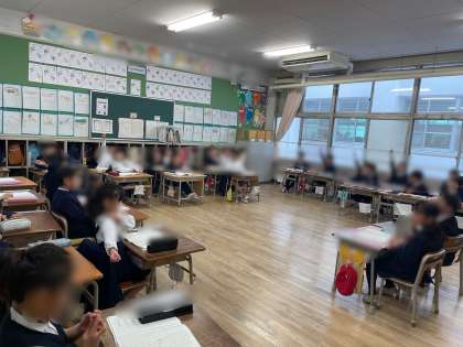 1年生最後の学習参観では、1年間でできるようになったことを発表します。今日は、どんなことができるようになったか、どの出しものに出るかなどを話し合いました。漢字や計算、縄跳びなどさまざまな意見が出ました。学習参観は2月ですが、本番に向けてたくさん練習していきたいと思います。