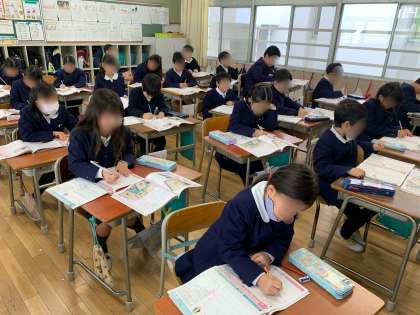 持ち主のみっちゃんに絵を描かれたり落書きをされたりして嫌な思いをしている、算数の教科書のかける君と国語の教科書のふみよさん。