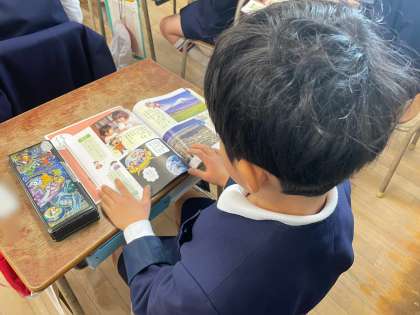 「美しいもの」について、話し合いました。「沖縄の海がきれいだった」「月や星がきれいだった」など今まで見たことがあるものを思い出していました。学習の最後には、「他のきれいなものも見てみたい」「もっといろいろなところへ行って、美しいものを見たい」という気持ちを高めていました。