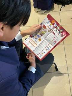 入場を待ってます。パンフレットを見てます。どこに行こうかな?