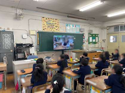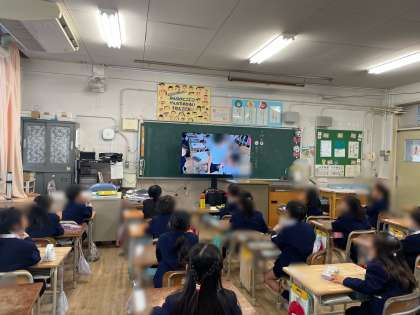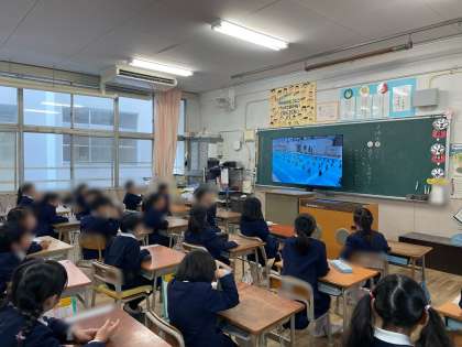 1年間の学校生活の写真をまとめた動画を見ました。「あ〜懐かしい」「こんなんやったなあ」など動画を見ながら自分たちの成長を感じていました。