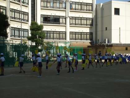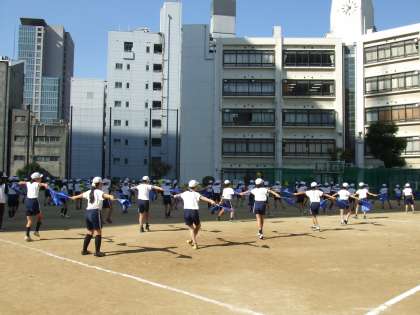 東中学校で運動会練習(5年)