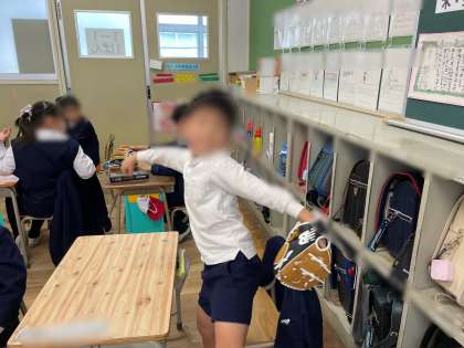 大谷選手から寄贈されたグローブが、南大江小学校にも届きました。各学級に回し、手に取っています。1年生は、初めてグローブを手にする児童も多く、「どうやってつけるん?」「ちょっと固いなあ」と言いながらもとても嬉しそうでした。中には、野球選手になったつもりで、ボールをグローブで受けたり投げたりする仕草をする児童もいました。
