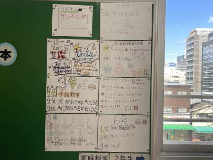 図書室の本で、今年度の貸し出し冊数が多かった本を学年別でランキングにまとめました。図書室前に掲示しています。先生方のおすすめの本のインタビューも更新しました。春休みにもたくさん本を読んでほしいと思います。