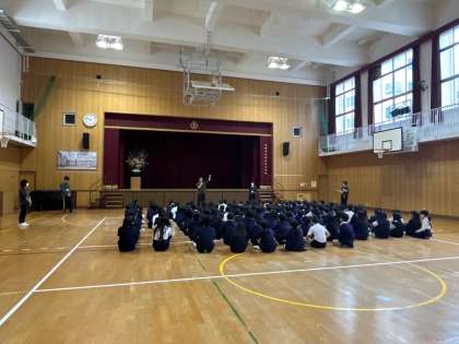 6年生に関わる先生の紹介や、学校のルールについて話をしました。