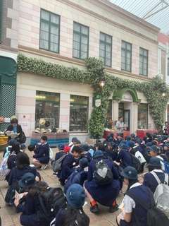 集合写真を撮った後、先生の話を聞いてからグループに分かれて出発です。