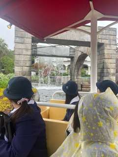 園内をしゃべりながら散策したり、乗り物に乗ったりとグループでゆったりした時間をすごしています。