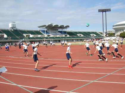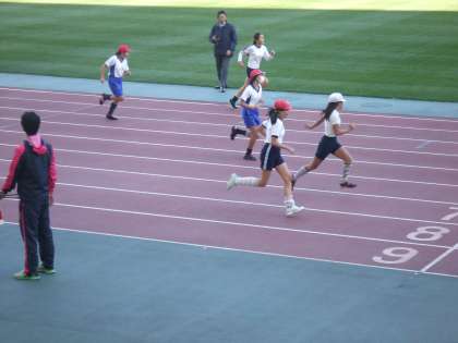 6年生が長居の各競技場で、中央小学校・西成区の小学校(梅南津守小学校・岸里小学校・玉出小学校)の6年生とスポーツ交歓会を行いました。午前中は第2陸上競技場でサッカーとドッジボールを、午後からは陸上競技場(長居スタジアム)で100走と400mリレー(100m×4)をしました。スポーツを通して親睦を深めることができました。