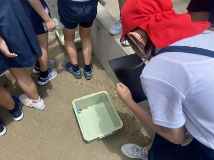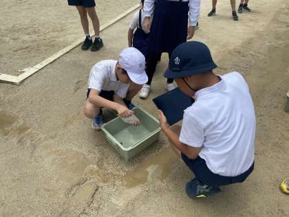 水の流れと地面のかたむきには、どんな関係があるのか実験をしました。