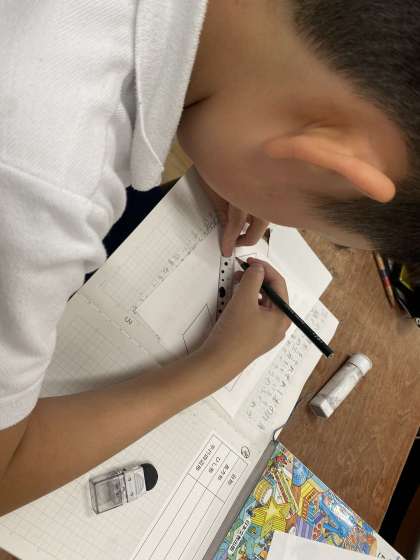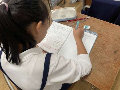 5年生の学習では、合同な三角形ができる四角形を調べる活動を行いました。