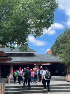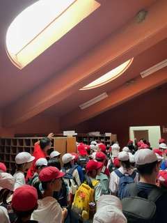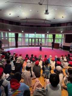 避難訓練を終えて、ホールで開舎式です。