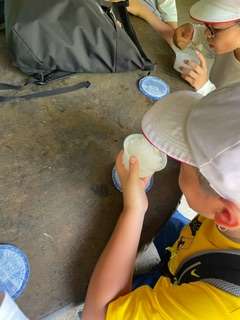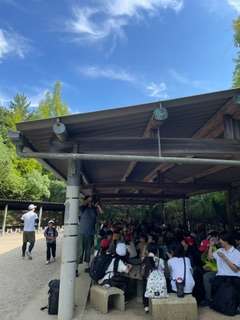 山から下りてきたら、かき氷アイスを食べました。「冷たーい!」