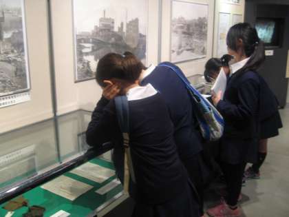6年生が平和学習の1つとして、森ノ宮にあるピースおおさかに見学に行きました。