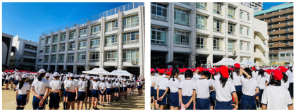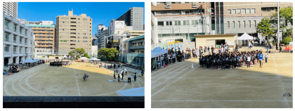 運動会の閉会式とその後の6年生の集合写真撮影の様子です。