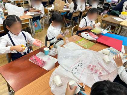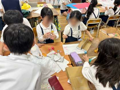 自分たちが作ったおもちゃで1年生や銅座幼稚園の子が遊んでくれるのを想像しながら、とてもいい顔で作っています。