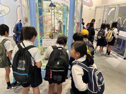 今日は4年生は大阪市立科学館に社会見学に来ています。プラネタリウムを鑑賞後、館内を見学しています。