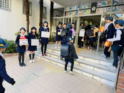 児童会の児童が朝から校門に立って、元気なあいさつをしながら取り組んでくれていました。