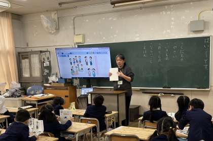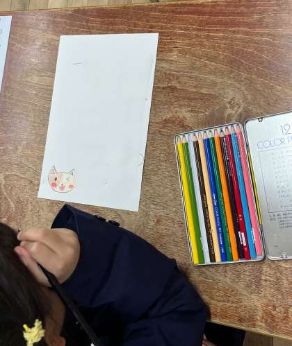 先生が書いたお手本をよく見て、ていねいに自分の名前を書いていました。