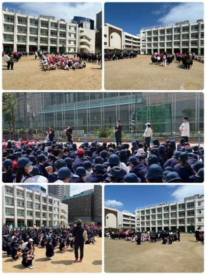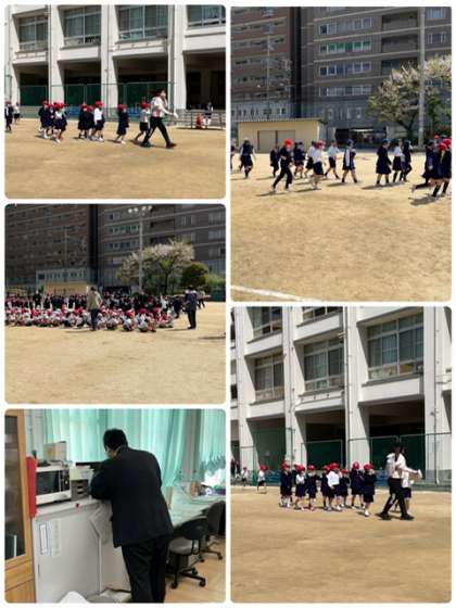 今日は、火災を想定した避難訓練を行いました。教頭先生の放送で児童たちは運動場へ避難を開始しました。先生の指示に従ってスムーズに避難してくることが出来ていました。1年生にとっては、南大江小学校での、はじめての避難訓練でしたが、とても良かったです。
