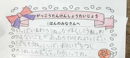 2年生は来週の学校たんけんに向けての準備に取りかかっていました。1年生宛ての招待状には、「なかよくしようね」「たのしもうね」「わからないことは聞いてね。」と1年生のことを思いやり、優しい言葉で書かれていました。とてもわくわくしながら活動していました。
