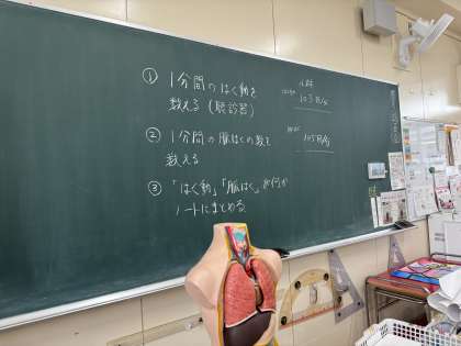 手首や首で自分の脈拍や、聴診器で1分間の拍動の数を数えました。