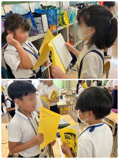 漢字の画数を外国語で尋ね、友だちが心の中で考えている漢字をあてるゲームをしました。