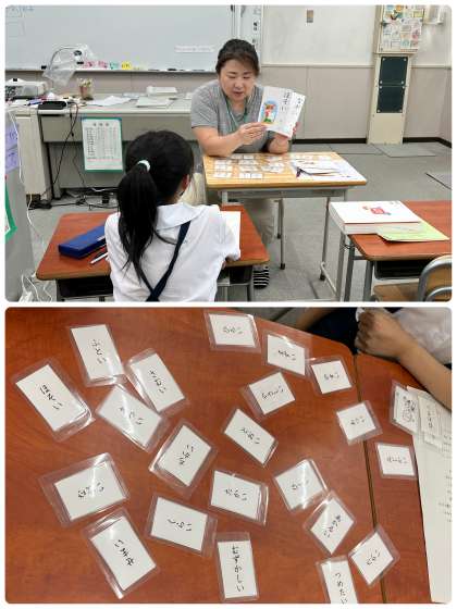 外国にルーツをもつ子どもたちの日本語教室では、子どもたちにあわせて2つの授業を同時進行しています。