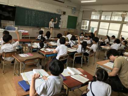2年生道徳の授業では、「ぎおんまつり」について、たくさんの人の思いを考えていました。その後、地域にある生國魂神社のお祭りについて考えていました。